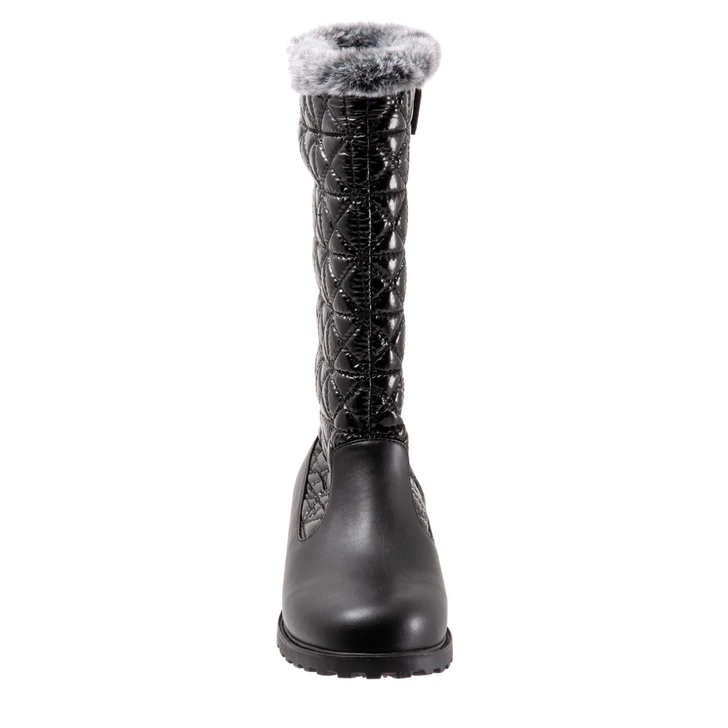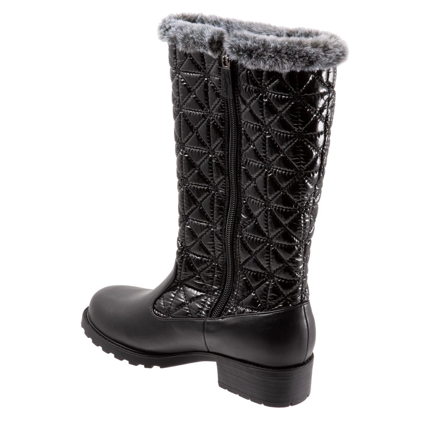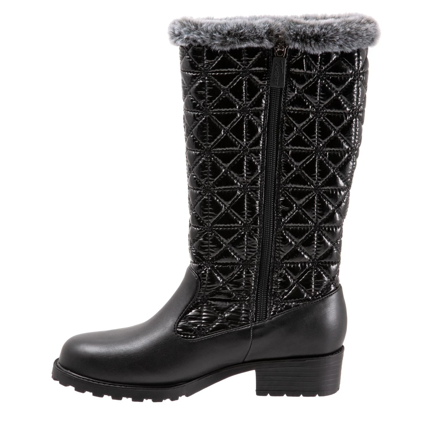 “Lofty insulation and geometric quilt patterning adds modern allure to this cozy faux fur lined tall boot offering season long protection from wintry days.”