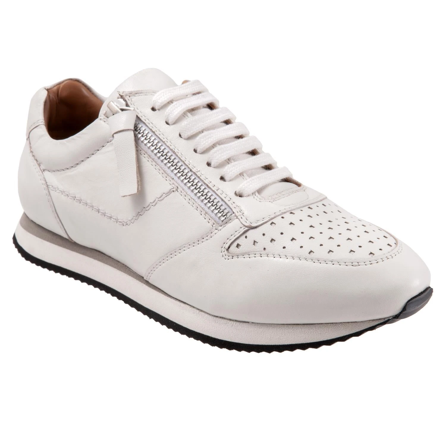 “Retro inspired with a modern twist, a functional side zipper and rich burnished leathers adds a refined edge to this sporty lace-up sneaker.”