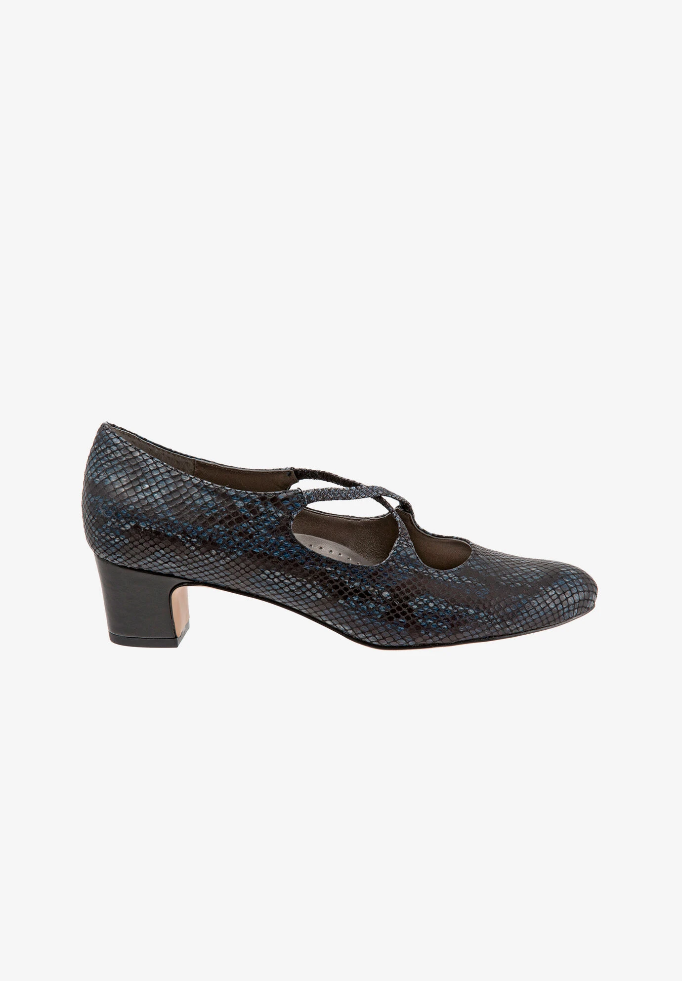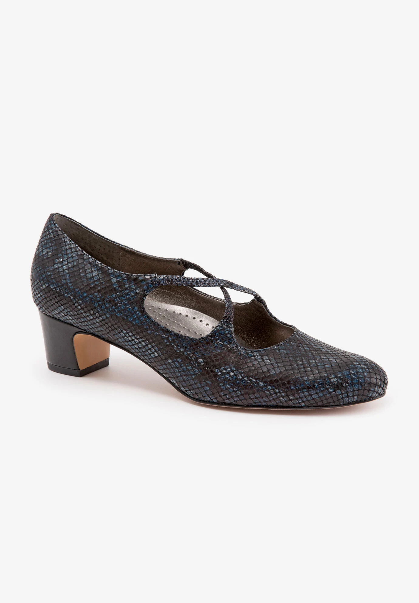 Leather strappy pumps available in full and half sizes 7-11, 12 M; 7-11, 12 W; 7-11, 12 WW