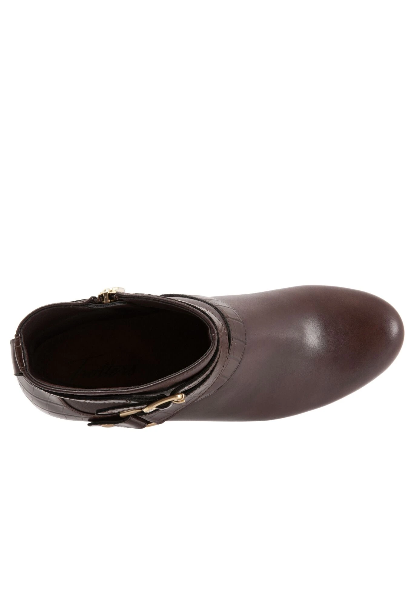 The short boot craze continues year round. This new boot on the best seller heel, gives great detail interest with the wrap around croco straps and hardware detail. Very soft and comfortable