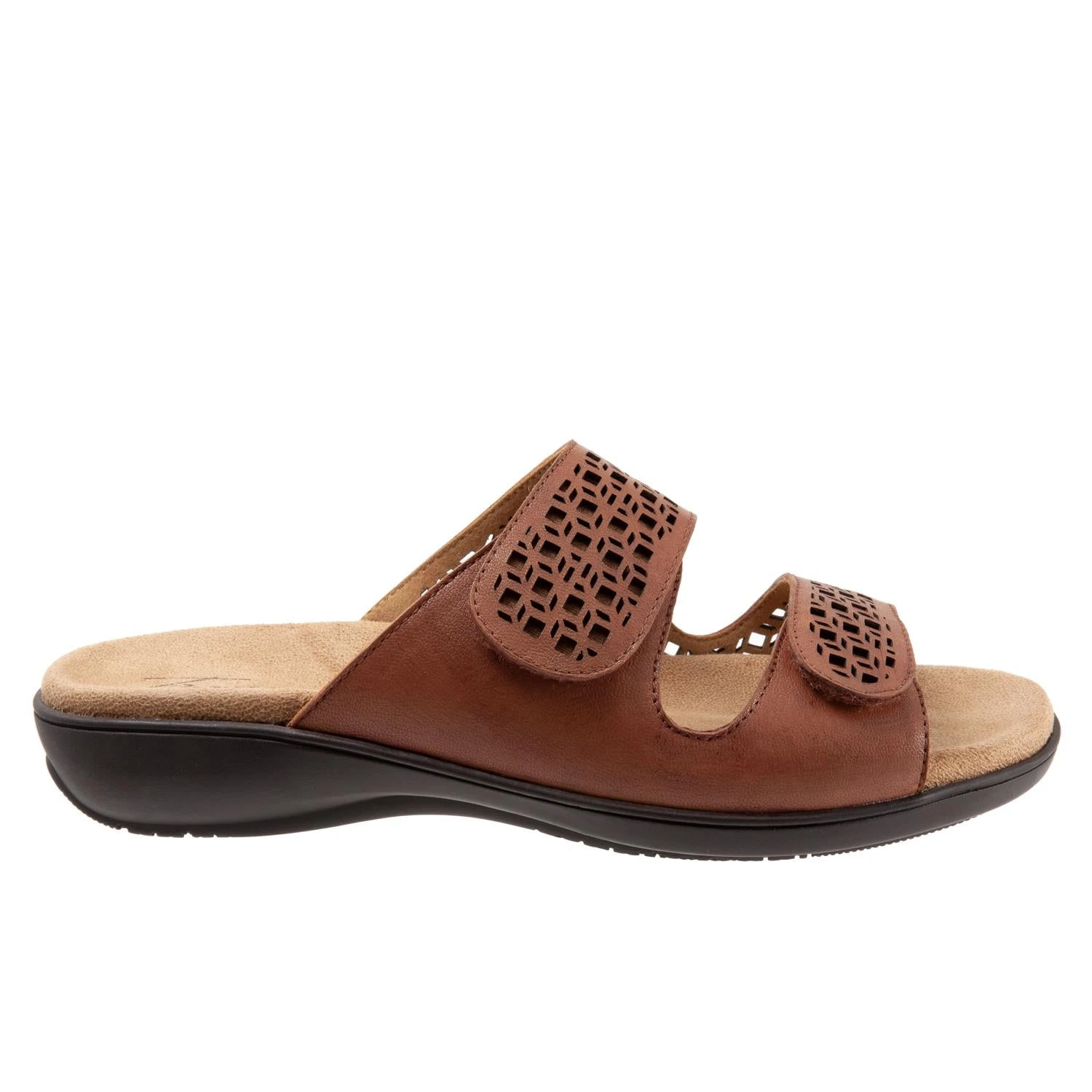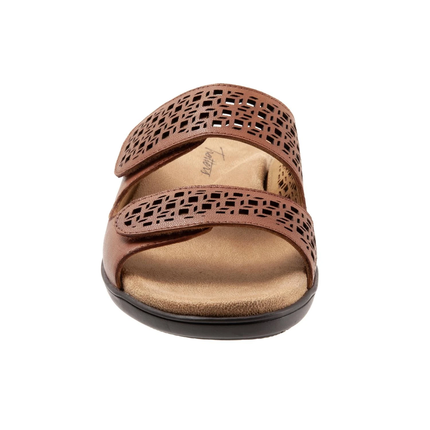 Geometric breezy perfs adds visual interest to a comfort focused two band slide. A cushioned footbed with molded support on a flexible sole adds maximum comfort.