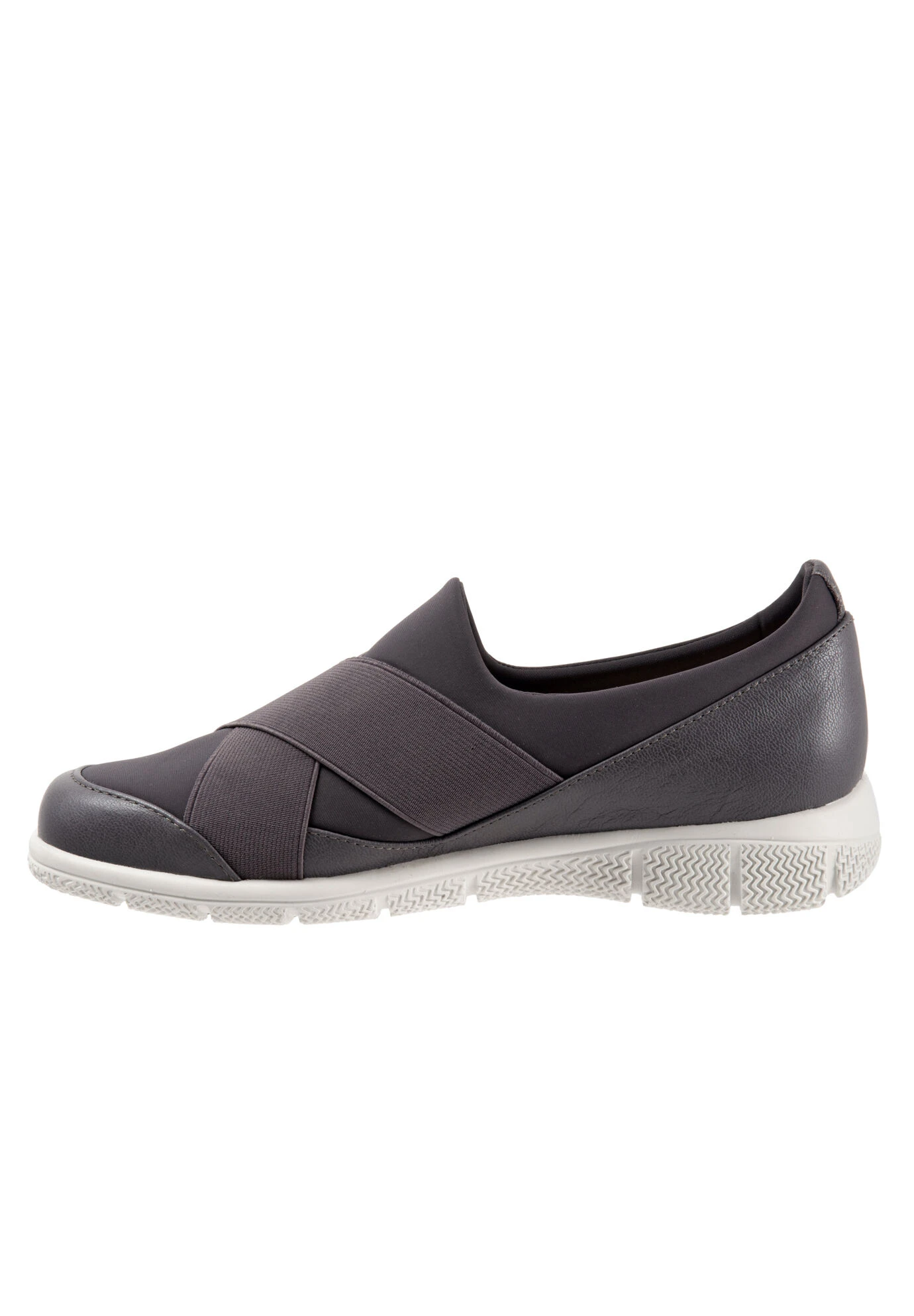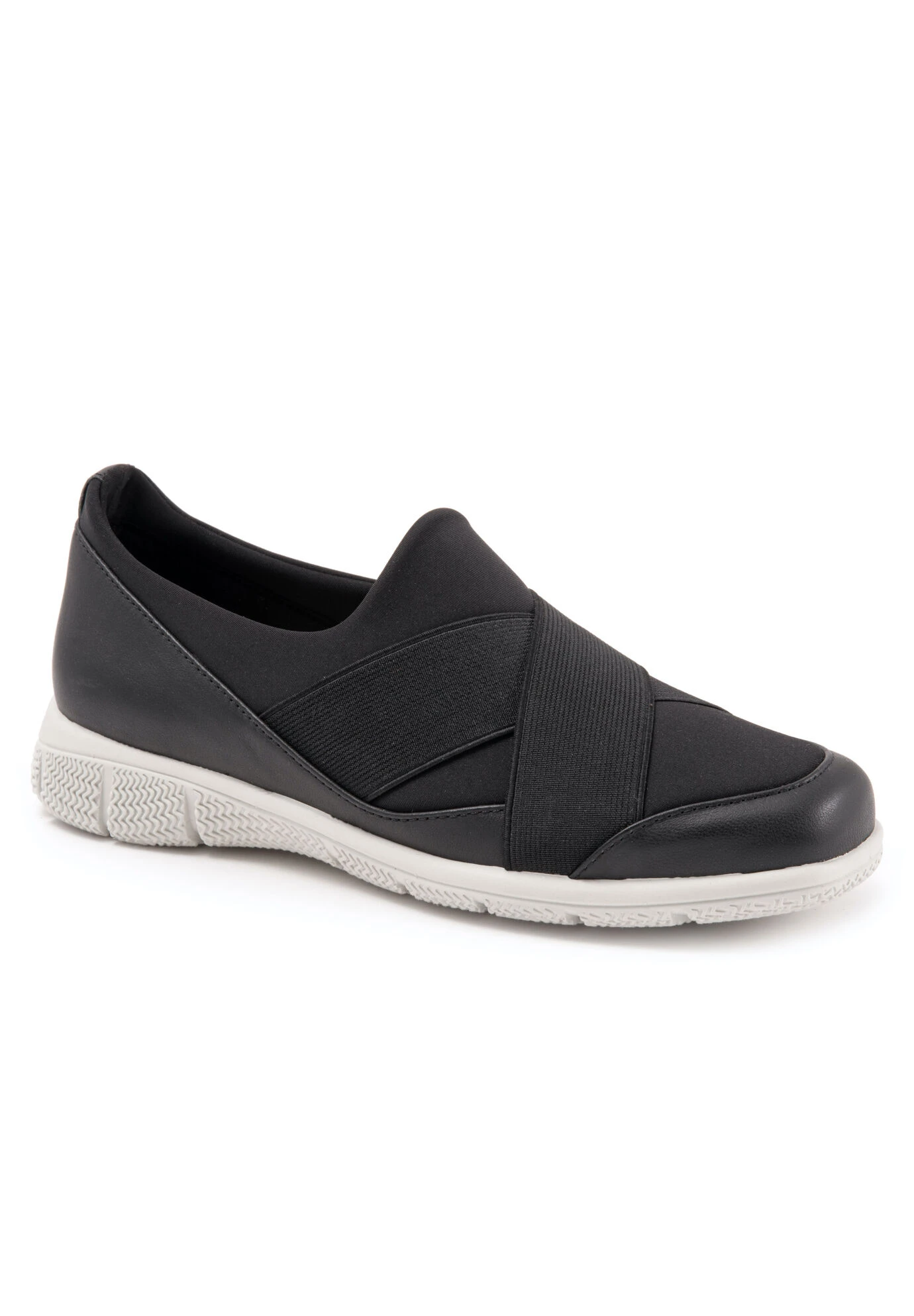 A slip-on sneaker with an athletic inspired lycra upper for flexible comfort is elevated by flattering criss crossing bands for the ultimate sport chic sneaker.
